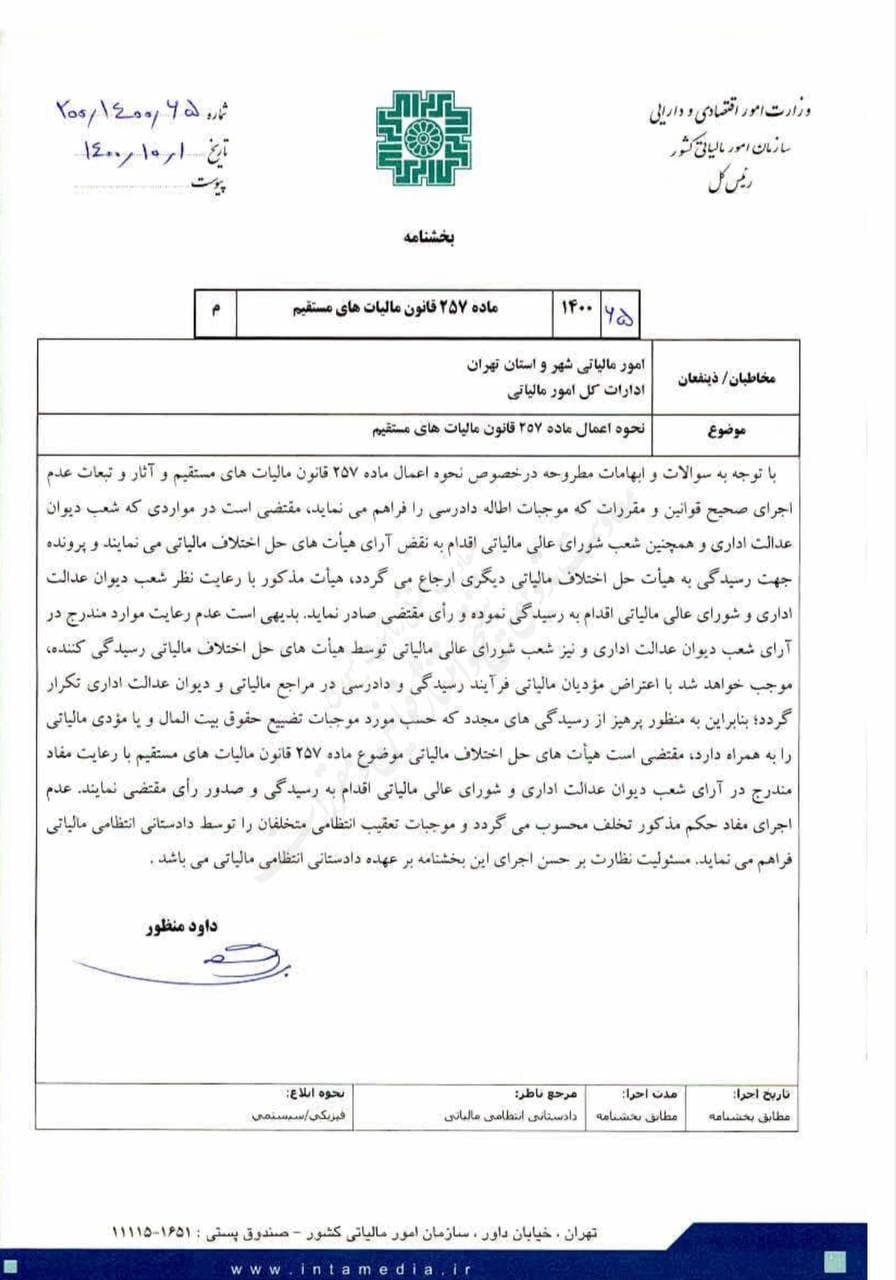 نحوه اعمال ماده 257 قانون مالیاتهای مستقیم