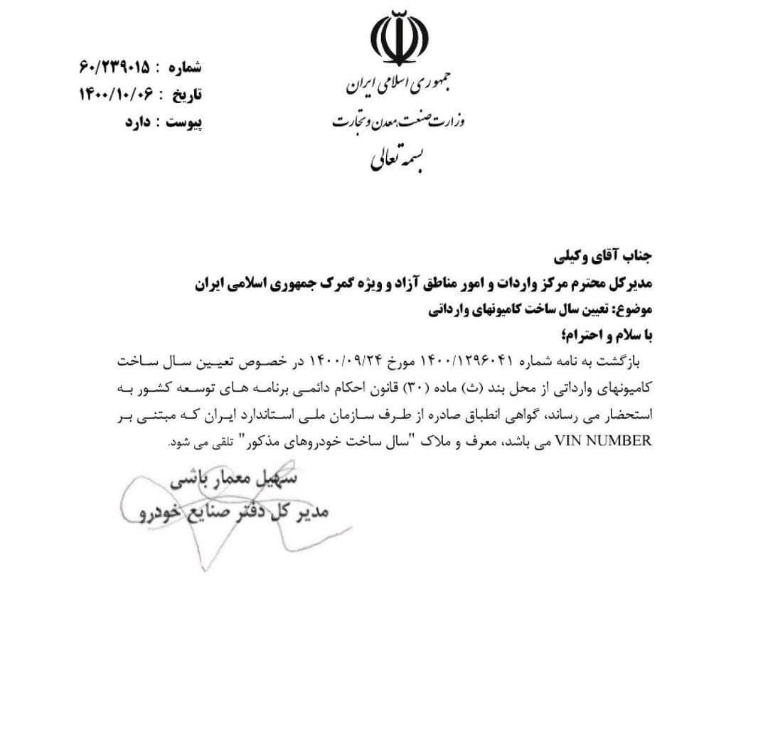 تعیین سال ساخت کامیون های وارداتی